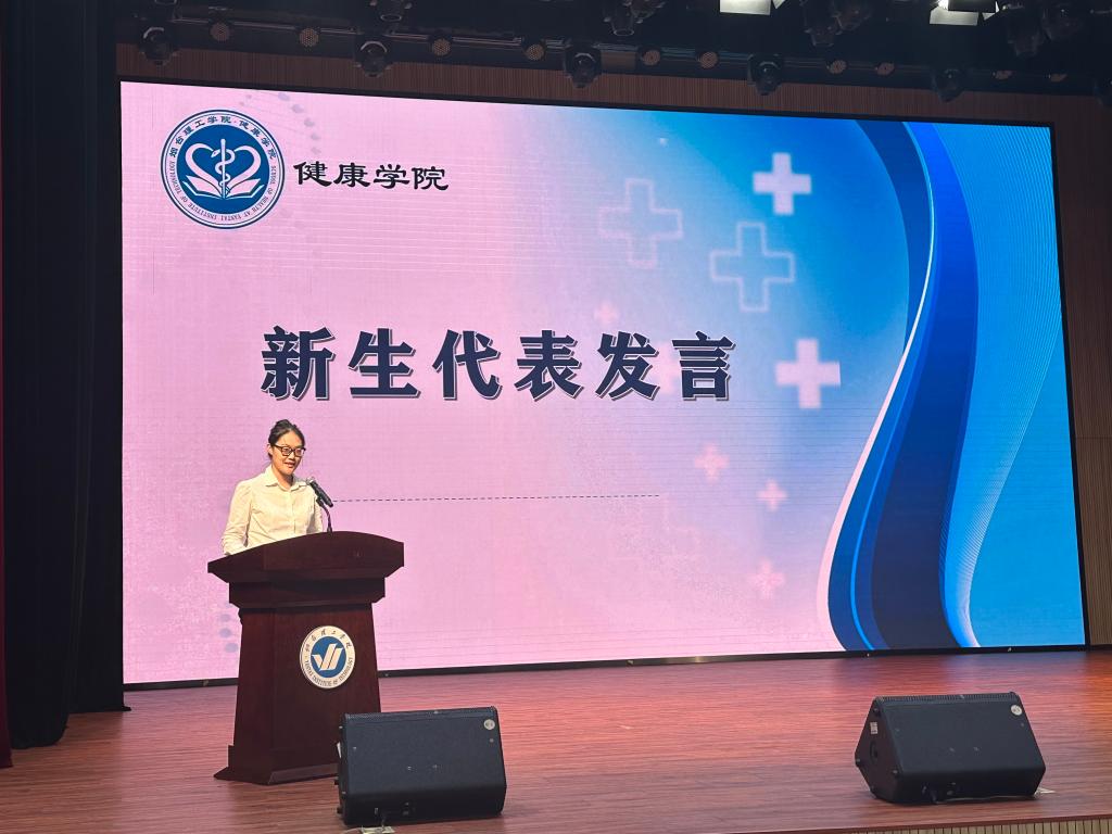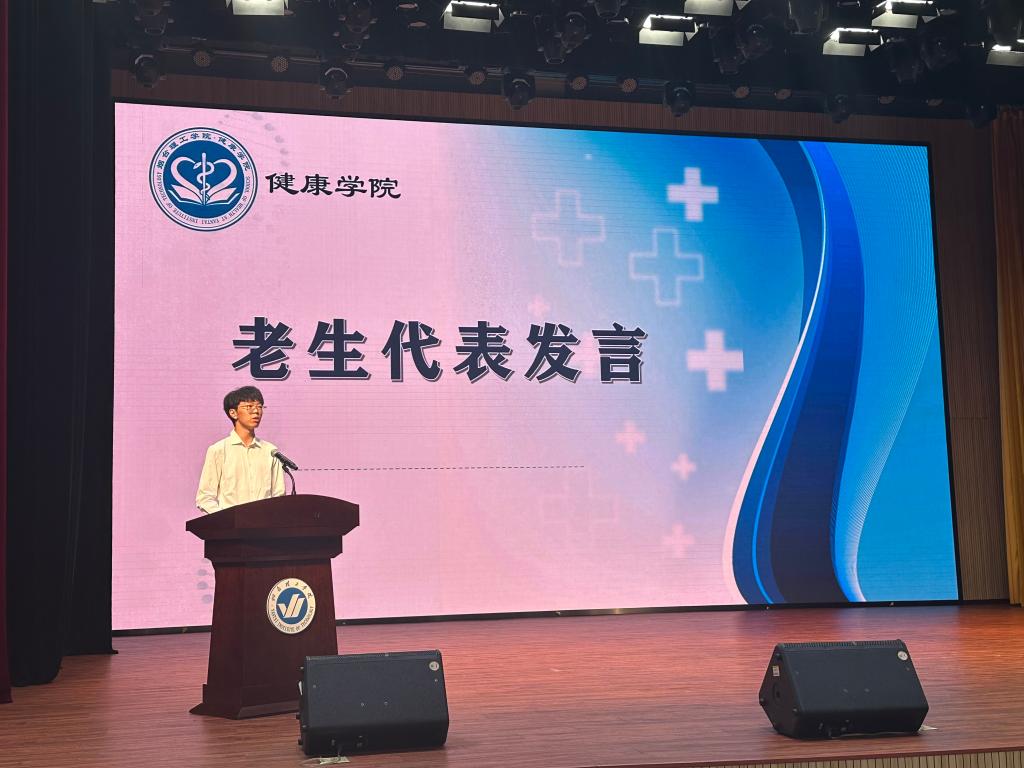 老生代表赵博歆结合在校期间的学习、生活与工作经历,分享了成长心得,展现出健康学院学子积极向上、勇于担当的精神面貌。新生代表李婧晏则抒发了初入大学校园的激动与喜悦,表达了对未来大学生活的美好憧憬,以及刻苦钻研、追逐梦想的坚定决心。