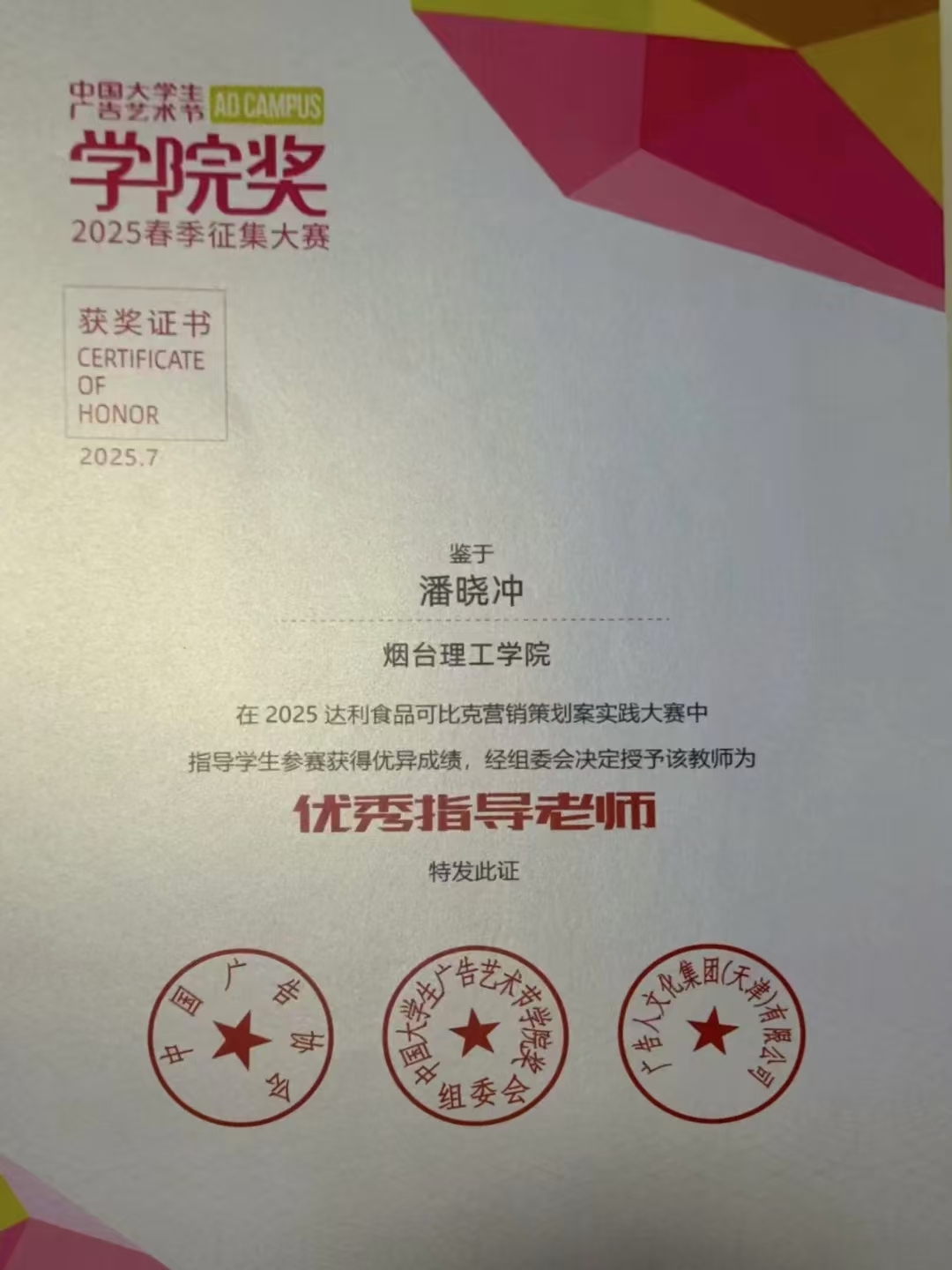 此次参赛团队由刘晓奕、张志皓、肖瀚程、王珞宁、曹语桐、黄元圣、孙进龙同学组成,潘晓冲老师担任指导,他们围绕可比克品牌,深入挖掘校园市场需求,打造出极具创意与可行性的营销策划方案。长期以来,文法学院坚持以赛促教、以赛促学,积极鼓励师生投身专业实践赛事,不断提升营销策划与创意传播能力。