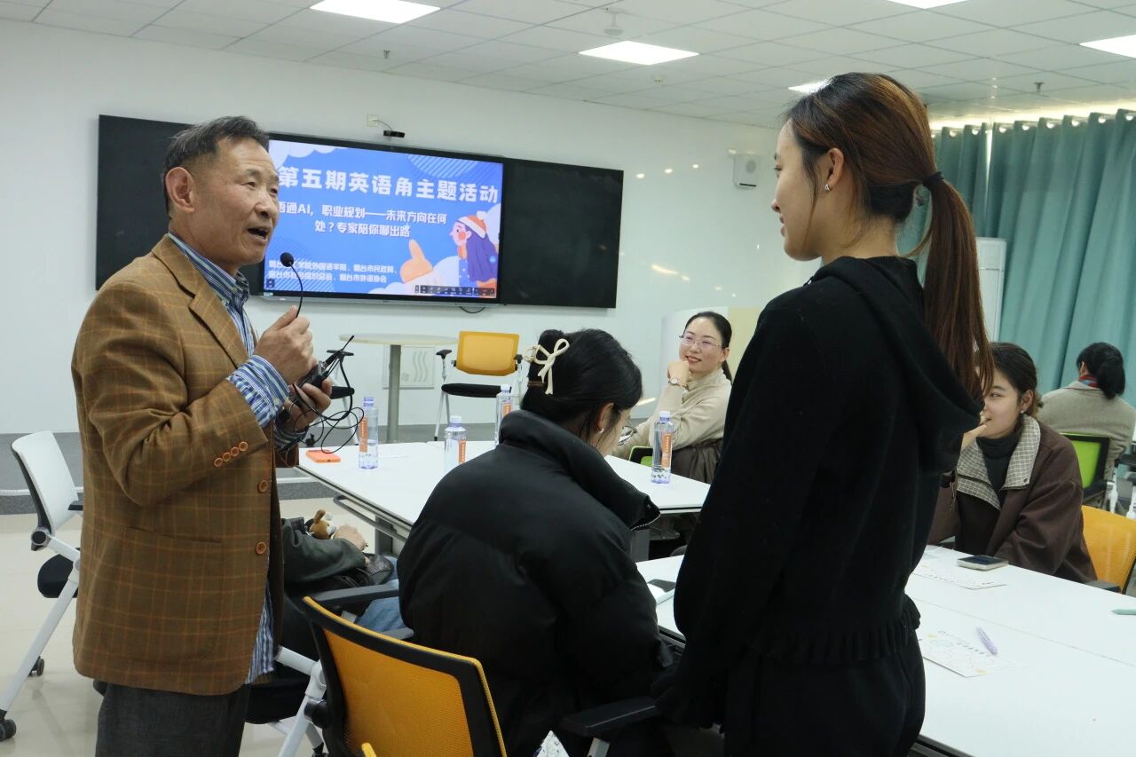 为帮助同学们明晰AI时代外语类职业发展路径,树立科学职业规划理念,11月14日,外国语学院在综合楼S203智慧教室开展第五期英语角活动。本次活动特邀烟台市外语协会会长、三特翻译事务所总经理担任主讲。外国语学院常务副院长于巧丽、党总支副书记陈秀慧、院长助理张丽及教师代表参加本次活动。