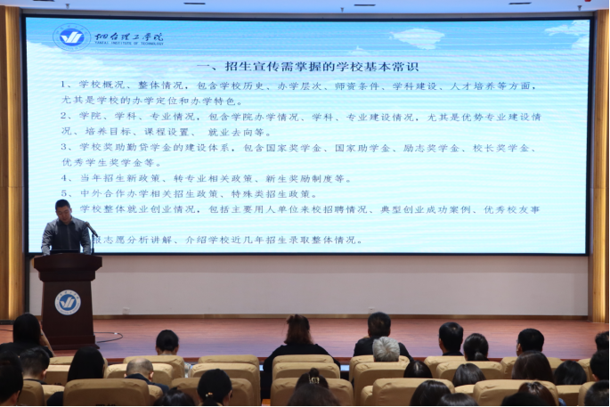 为贯彻落实教育主管部门《关于做好2024年普通高校招生工作的通知》要求,更好地服务考生、家长和学校招生工作,4月26日上午,学校在综合楼六楼学术报告厅召开2024年招生宣传工作培训会,各学院招生宣传组工作人员参加培训。会议由招生就业处副处长褚亮辉主持。